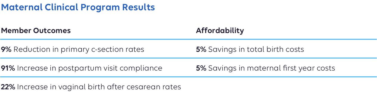 [Source: Internal maternity data (2022)] [Source: Internal data evaluation (2022)] [Source: Addressing Maternal Health Disparities: Doula Access in Medicaid (elevancehealth.com)]